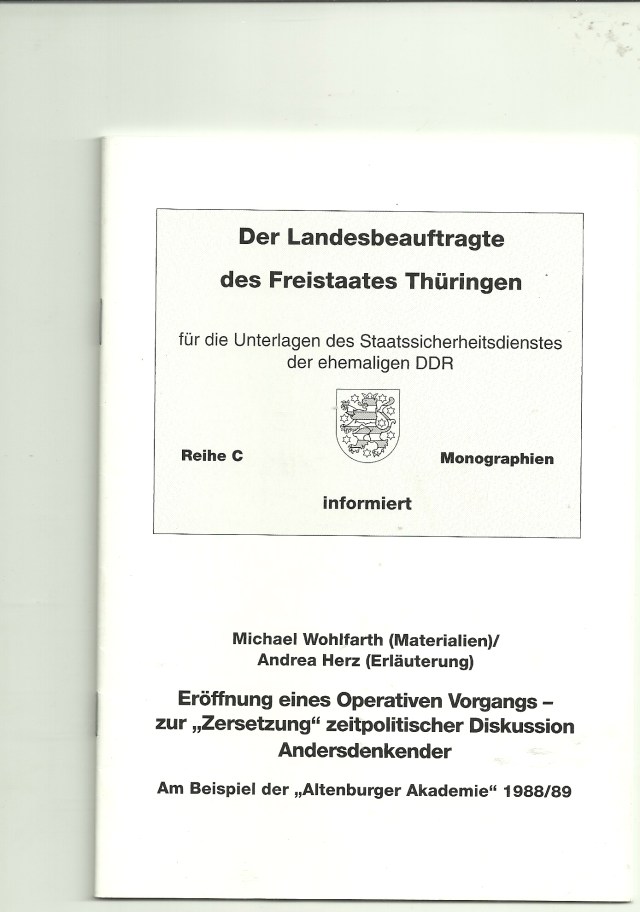 Begonnen haben wir eigentlich damit schon im Herbst 89/Winter 90, mit den Kolumnen in einer Wochenzeitung für das Altenburger Land . Diese erste demokratische Zeitung fü runsere Region wurde gegründet vom Arbeitskreis „Presse“ in „unserer Kirche“/Brüderkirche zu Altenburg, unter Leitung von Ingo Schulze, damals Dramaturg am Landestheater Altenburg.