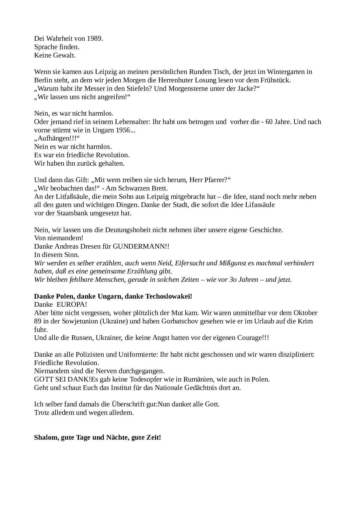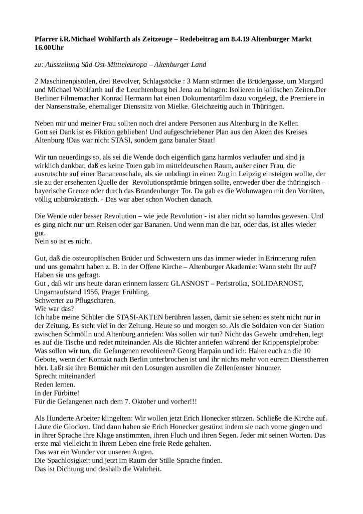 Das evangelische Pfarrhaus ist eine kulturelle Größe in der Geistesgeschichte. Siehe dazu die Ausstellung vor einigen Jahren in Berlin (Historisches Museum). Das evangelische Pfarrhaus in der DDR hat diese Tradition bewahren können: freier Sprach – und Denkraum. Deshalb freuen wir uns – meine Frau Margard und ich – über das FORMAT:“Pfarrhaus Brüdergasse 11 in Altenburg Station der Gerechtigkeit“ mit dem informativen Text zu den Vorgängen vor und nach 1989.
