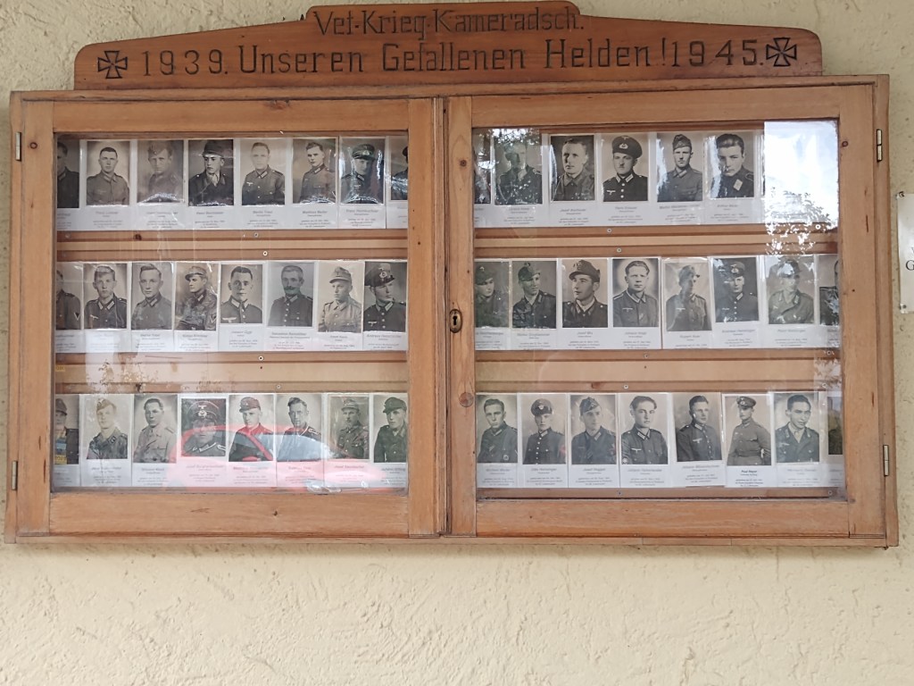 Kriegstagebuch – Aufnahme an einer bayerischen Dorfkirche 2023 im Sommer d. J. – Gedenken an die Gefallenen. – S. auch letzter Rundbrief der Kriegsgräberfürsorge in der Bundesrepublik Deutschland, Berliner Sektion (Jugenabteilung).