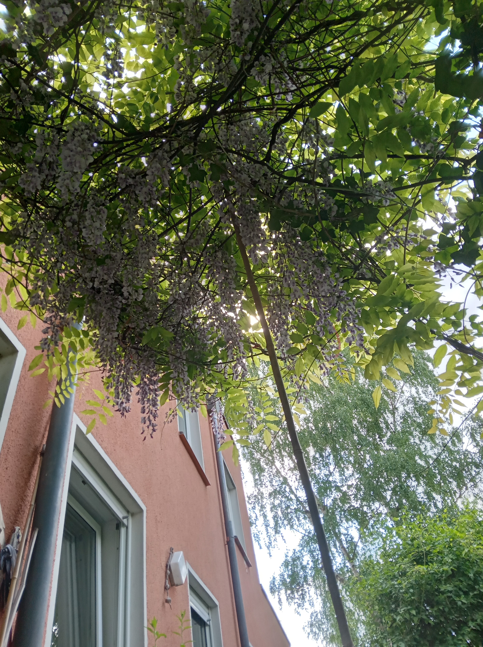 In diesem Garten habe ich viel gesetzt, geschrieben und zurechtgezimmert – als die Bäume noch standen. Aufgrund der Aufhebung einer Schonfrist wurden wir gezwungen, die Bäume abzuholzen, damit der Garten abgegeben werden kann. Jetzt bewirtschaftet ihn eine ukrainische Familie .