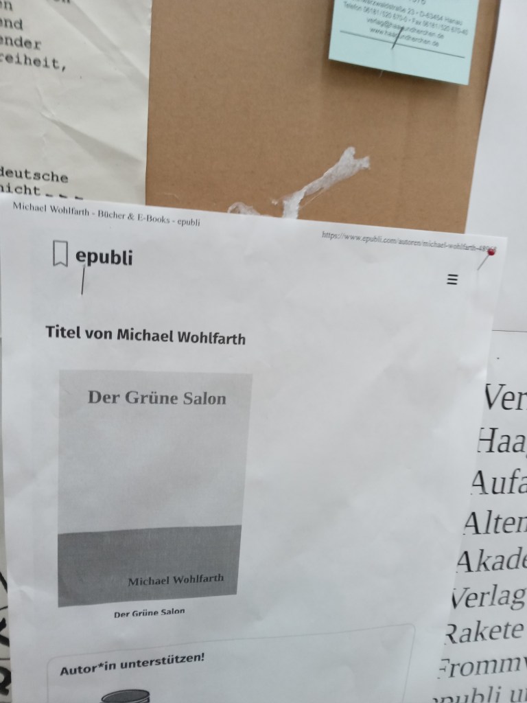 epubli/Eigenverlag Michael Wohlfarth/ Günter Schade EPUB-Satz und Lektorat DER GRÜNE SALON, Fortsetzungsroman von AMERICA (bei Fam.Wohlfarth@t-online.de als Druck erhältlich).