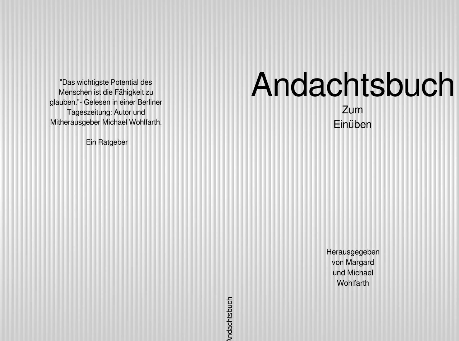 Aus „Andachtsbuch“ erscheinen bei epubli berlin, auch als OFFENE KIRCHE, herausgegeben von Margard und Michael Wohlfarth, Autoren Helga Rohwald(Gedichte), Gebete von Michael Wohlfarth und Briefe, Impulse, Bilder. Und den Besuchern der Offenen Kirche in Altenburg (Brüderkirche am Markt) von 1988 bis 2007 (Gästebücher, Gebete, Hlferufe, Bitten am Nagelkreuz, hergestellt von Andreas Gießler, damals Vikar, jetzt geschäftsf. Pfr.)