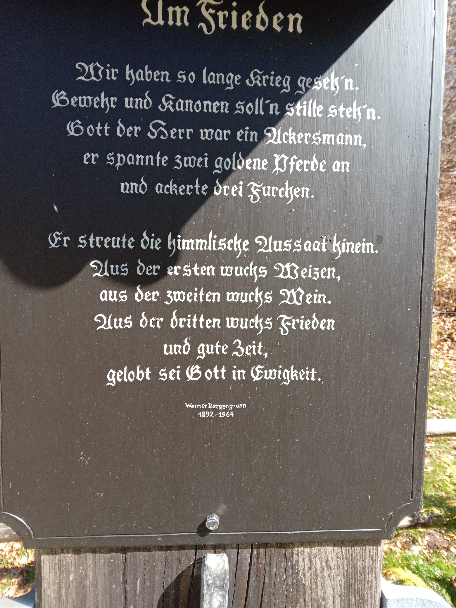 Das Titelbild beinhaltet den Spruch von Werner Bergengrün am Kriegerdenkmal (Veteranenclub)/ Wanderweg zum Kofel, beginnend in Oberammergau. S.vorherigen BLOG. Passend sehr für Müggelheim, weil Werner Bergengrün ein ostpreußischer Dichter ist. Und Berlin hat sehr wohl etwas mit Ostpreußen zu tun.