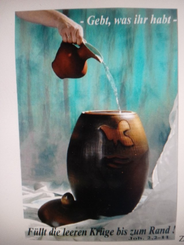Der Vormittags-Gottesdienst mit Kelcheinholung und fortgesetztem Heiligen Mahl kam in seiner Dialog-‚Form zustande, weil Dr. Thomas Tunsch und Pfr. i.R. Michael Wohlfarth die Kelcheinholung schon einmal praktiziert haben. Daran erinnernd hat mich Thomas Tunsch angerufen und diesen Vorschlag gemacht: Liturgie mit der Besonderheit des Hawai-Gesanges, Liedauswahl er selber. Beide predigen s.o.! Leitung Michael Wohlfarth : Kelcheinholung und fortgesetztes Abendmahl. Die Veröffentlichung an dieser Stelle mit ausdrücklicher Zustimmung mit späterer Ergänzung in Form des HAWAI-LIEDES durch Pfr.i.R. und Erwachsenenbildner Michael Wohlfarth mittels seines BLOGS. Wir freuen uns auf Reaktionen und darüber, dass Kelcheinholung z.B. wärend jesuitischer Exerzitien gar nichts Besonderes darstellen. Aber im evangelischen Raum schon – meine ich.