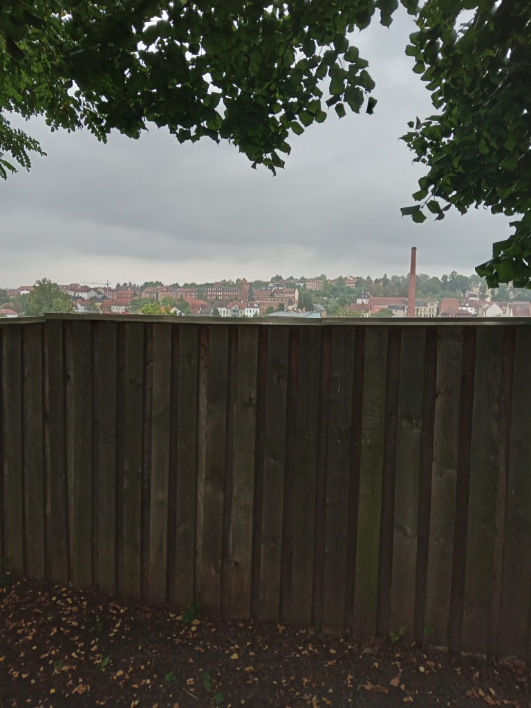 Ein letzter Blick zurück auf den Busplatz, die Chemietoiletten, in der Ferne der Schacht…