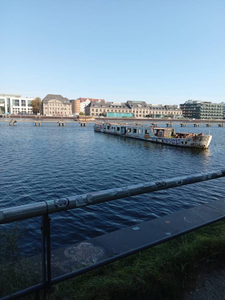 Berlin-Bilder zum Tag der Deutschen Einheit 3.Oktober 2025 von Michael Wohlfarth (Ausgangspunkt Spreeufer hinter der ARENA) von oben:“Silhouette“, „Unterirdisch“, „Büchertisch“, „Über Wasser gehen“, „Fliegender Holländer“.