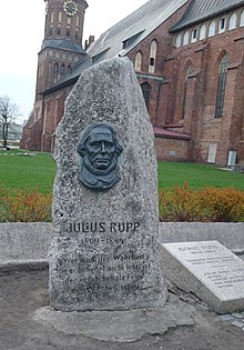 …vor Jahren auf dem Kirchhof des Domes im ehemaligen Königsberg, jetzt Kaliningrad, fand ich nicht nur das Grab von Immanuel Kant , sondern auch das Grab des Predigers und Pastors Julius Rupp, dem Großvater von Käthe Kollwitz, der auch und gerade für Berlin so wichtigen Malerin und Grafikerin, die am Prenzlauer Berg mit ihrer Familie wohnte.